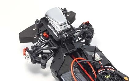 HD center shaft S is equipped as standard to prevent twisting and support high-speed performance. The simple and functional main chassis uses lightweight impact-resistant nylon to reduce weight and an integrated gearbox that optimizes torsional rigidity to deliver a low center of gravity. The simple upper-deckless design realizes strength through each component and section.