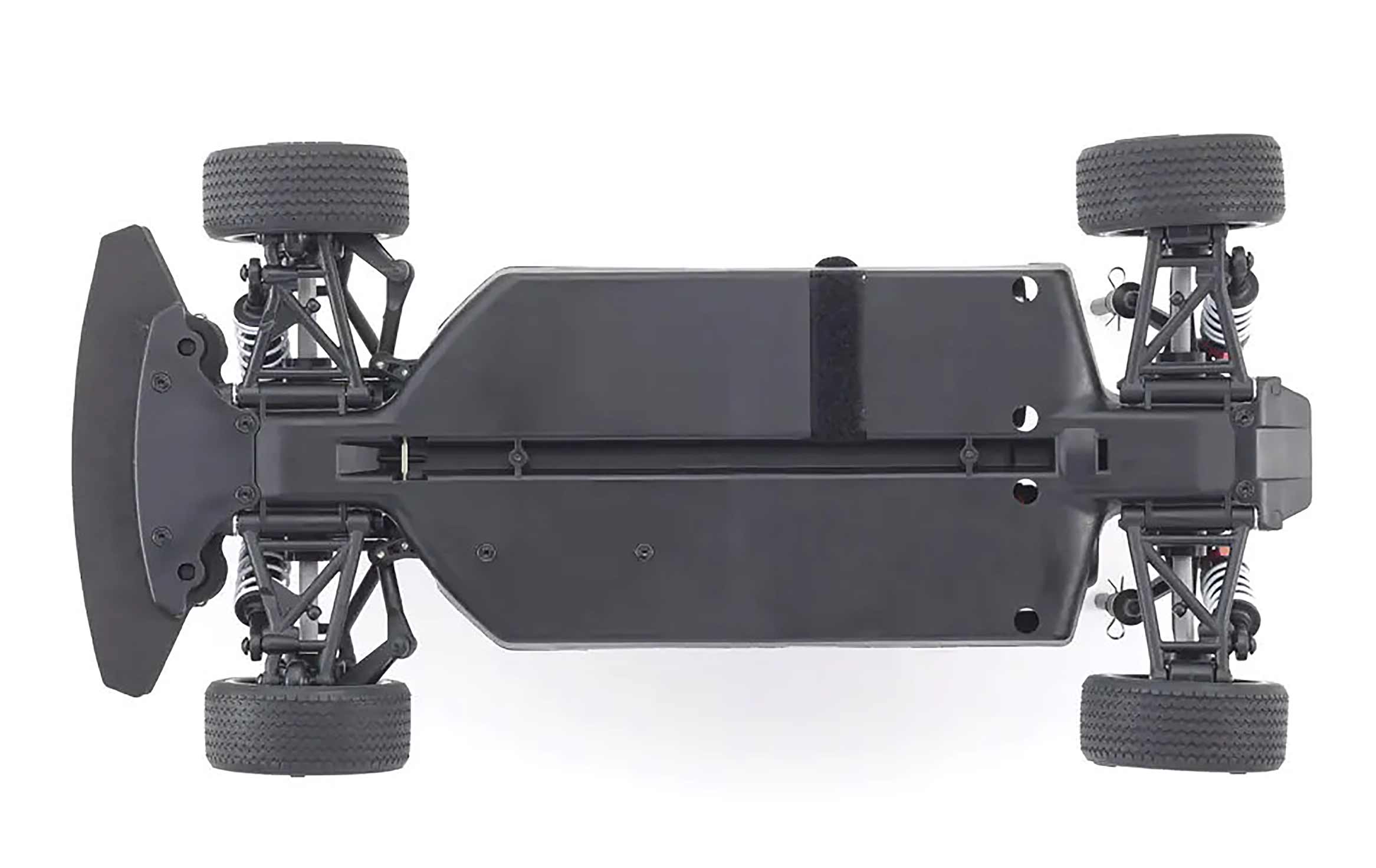 Completely new chassis has a low center of gravity with its simple, yet, functional design. Featuring an integrated gearbox that optimizes torsional rigidity of the main chassis, the nylon material reduces weight while improving impact resistance. Each key component has been reinforced in this simple design without an upper deck.