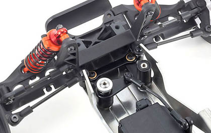 Toe angle settings on the rear hub carriers can be set to 1.0°, 2.0°, 2.5°by replacing resin bushings. Detailed settings can be adjusted according to the specific racing conditions.