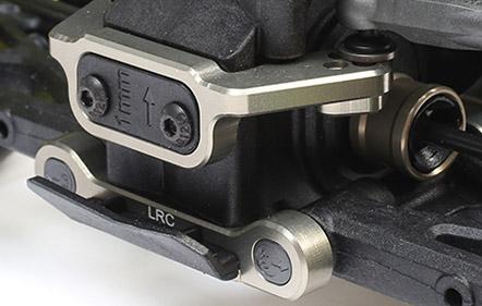 The 22 5.0 includes the standard Low Roll Center (LRC) front pivot with kick shim in the kit and offers the optional High Roll Center (HRC) front pivot separately. Also included in the kit is a new 1mm thick kick shim which allows for incremental adjustments. Now, racers can run the Super Low Roll Center, Low Roll Center, Medium Roll Center, or High Roll Center, with a 3mm adjustment window.