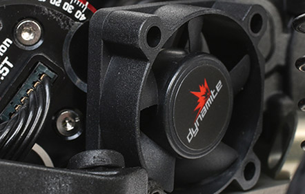 The prevalence of spec racing has led to the need for many racers to run motor fans to keep temperatures lower. Rather than an aluminum mount, or double-sided tape, the 22 5.0 includes a molded fan mount secured to the mud guard for easy and dependable fan mounting.
