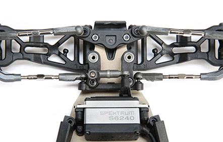 The balance and consistency of the 22 5.0 can be tuned using different composite materials in key parts throughout the vehicle. The kit included the parts the race team prefers: Stiffezel front suspension arms, soft rear suspension arms, standard mud guards, and standard waterfall.