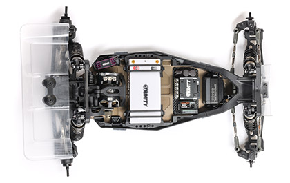 The prevalence of spec racing has led to the need for many racers to install motor fans for keeping temperatures lower. Rather than an aluminum mount or double-sided tape, the 22X includes a built-in, molded fan mount secured to the mud guard. You can easily and securely install your choice of widely available 30mm x 30mm fans.
