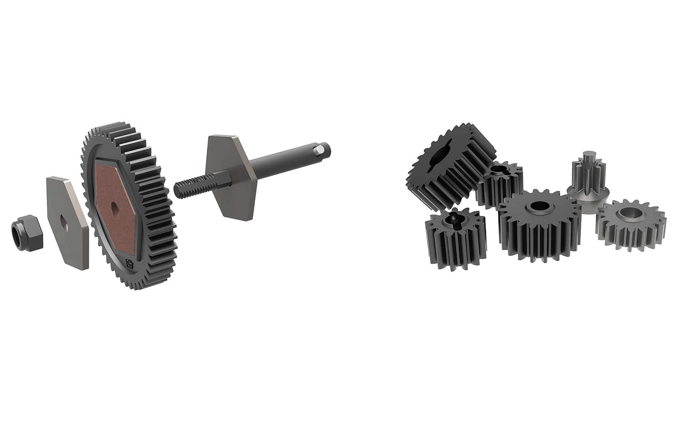 Allows for quick gear changes without the need to remove the entire transmission. Includes optional underdrive gears that allow for 10% and 20% underdrive to the rear axle improving climbing performance. (0% out of the box)