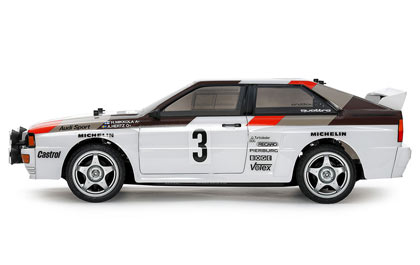 The Audi Quattro A2 is an iconic Rally Race Car that made its mark in the 1980’s. Tamiya’s 1/10 scale radio control replica brings rally racing fun to hobbyists on the adaptable and easy-driving TT-02 chassis.