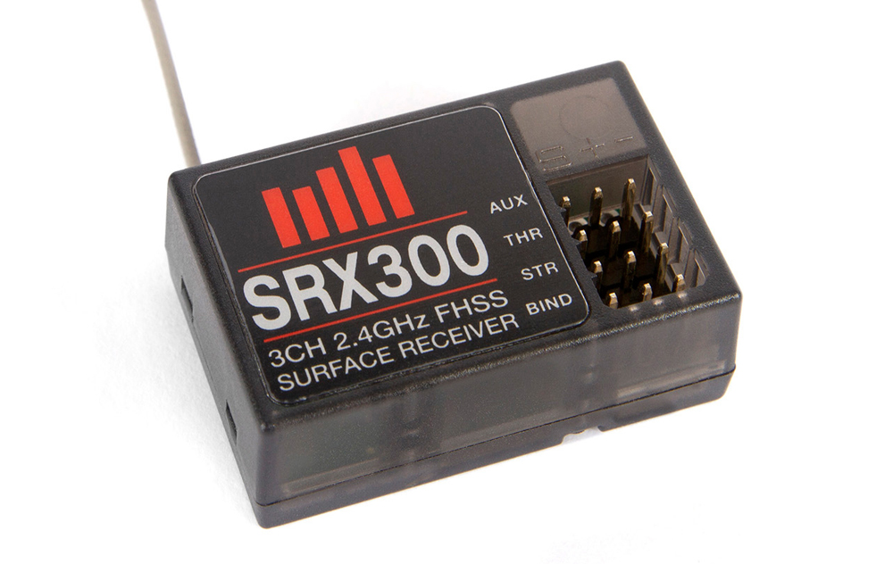 The SRX300 is a 3 channel 2.4GHz receiver that operates on the FHSS modulation. It is conformal coated to help prevent damage from water, dust and other elements. Features an extra-long antenna lead for easy and effective antenna placement.