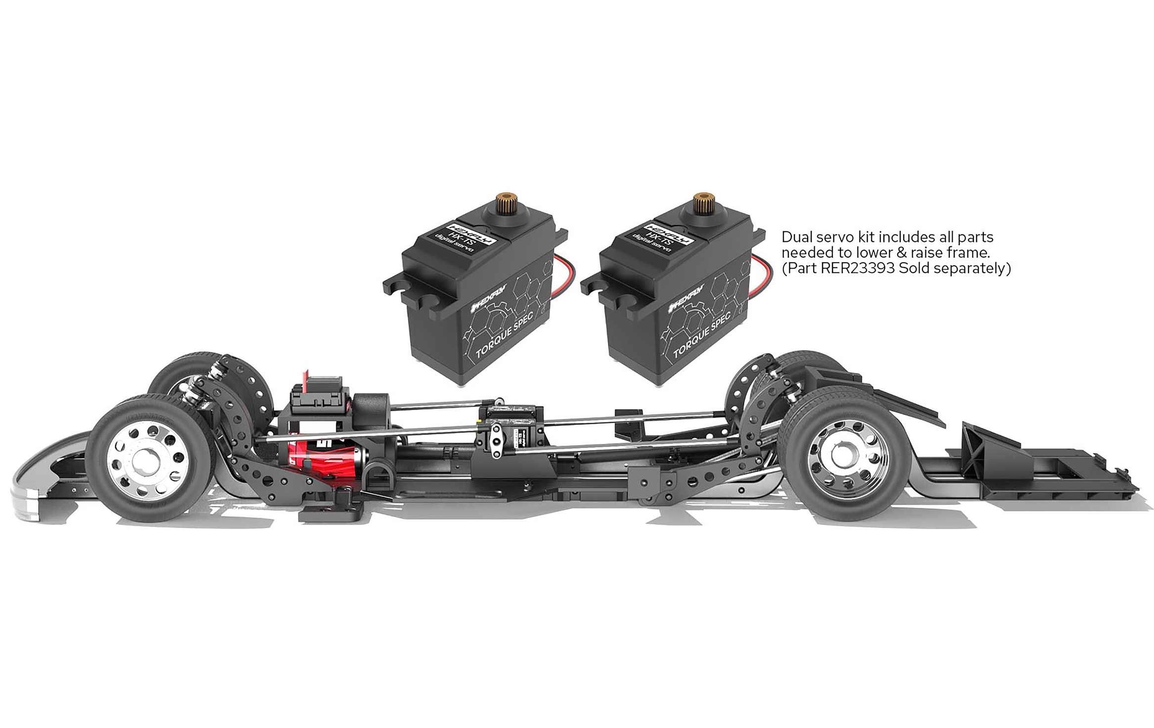 Lay frame! Custom hauler drops to the pavement for maximum style points. Dual servo kit sold separately (Part RER23393).