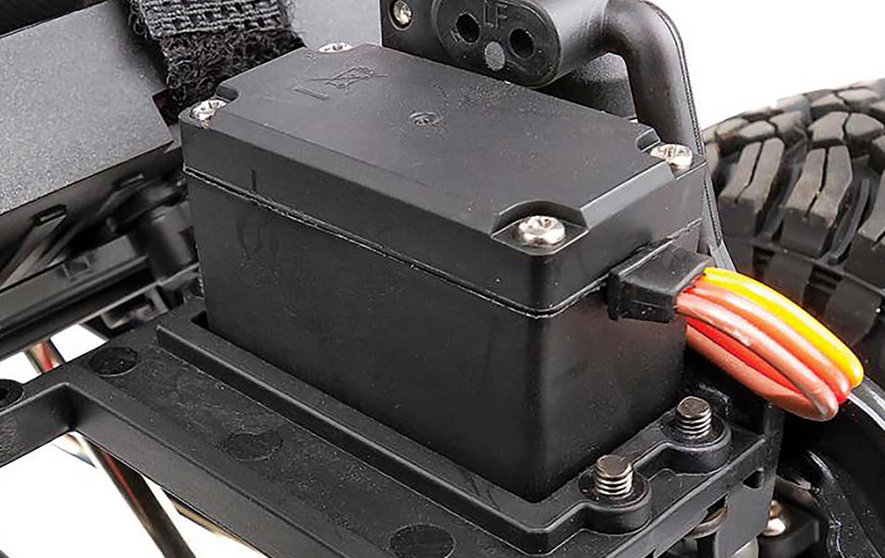 The XP130, 2.4GHz, 3-channel radio, and receiver, together with a Reedy Power 1320MG (metal gear) water-resistant servo pushing out 173 oz-in (12.5kg-cm) of torque at 6V is the perfect setup for keeping the Enduro under control on the trail.