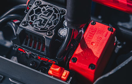 Powered by the BLX120 brushless system, the KRATON™ 4X4 4S BLX is unstoppable on trails, race tracks, and muddy courses. Its 2400Kv brushless motor is matched to an ESC with dual EC5™ connectors for using two 2S LiPo batteries. Differential gears inside the front and rear gearboxes are made of durable metal.