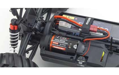 Equipped with a long 550 size 14-turn brushed G14L motor that generates enough torque power for wheelies when the battery is fully charged so the fun of dynamic big-tire performance can be enjoyed to the full!