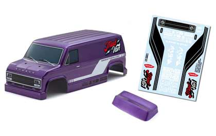 Angular shape of the molded polycarbonate body is designed in the image of an American full-size van style of the 1970-1980s. Large-diameter wide tires compliment the body design and deliver strong performance with the polycarbonate roof spoiler.Extra decal sheet included to customize body.