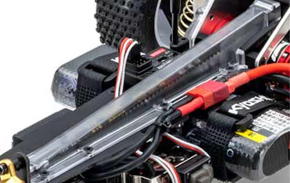 The 6061T6 aluminum alloy main chassis achieves an excellent balance between rigidity and crash resistance and uses hex screws with the countersunk holes for a flat underside of the chassis.