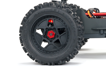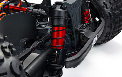 Long, aluminum-bodied, oil-filled shocks with silicone O-rings are mounted on high shock towers. These plus wide suspension arms give the OUTCAST 4S BLX the plush suspension travel needed to soak up bumps.