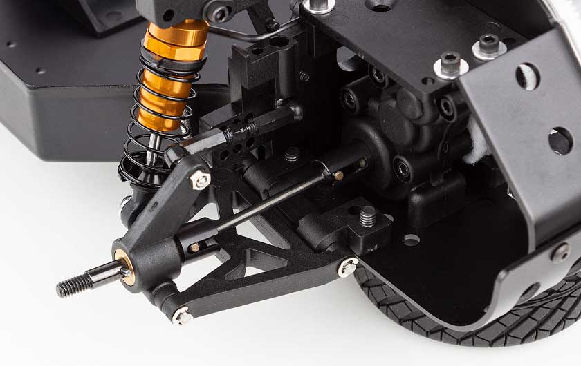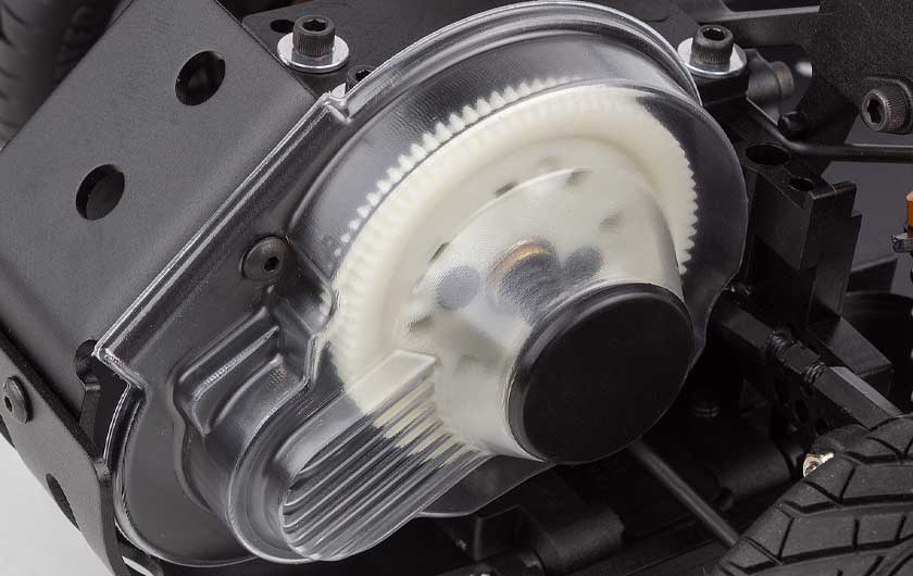 Computer-designed, race-tuned suspension, semi-pneumatic tires that hook up on almost any hard surface, and the World Championship Stealth® gearbox let the RC10DS race on surfaces that most pan cars can’t even run on.