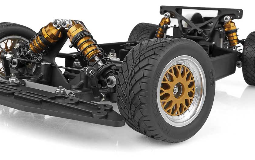 The DS kit gives you everything you need to go fast on asphalt: the classic and near indestructible aircraft alloy chassis, scale road racing wheels with mesh inserts, molded racing tires, suspension arms, our alloy bodies, custom racing oil-filled shocks, shock towers, anti-roll bars, plus all the necessary high-quality hardware. Step-by-step instructions make assembly easy for the beginner and race-tuning tips are provided for the advanced racer on the RC Cheat Sheets online app.
