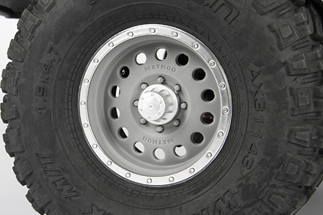 The MR307 Hole is a fresh take on the classic hole-wheel design that dominated early off road racing. Just like the Double Standard and NV, the Hole features a simulated beadlock ring by way of a strategically placed under-cut on the outer lip of the wheel. Clean, simple and METHOD STRONG! These officially licensed METHOD Hole Wheels are replicated in true form for durability and a clean line look, molded in a magnesium grey color with a satin chrome beadlock rim.
