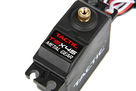 The included Tactic TSX45 metal gear servo is rated at 151 oz-in of torque for massive turning power and dual ball bearings provide smooth and precise movement for the metal gear train.