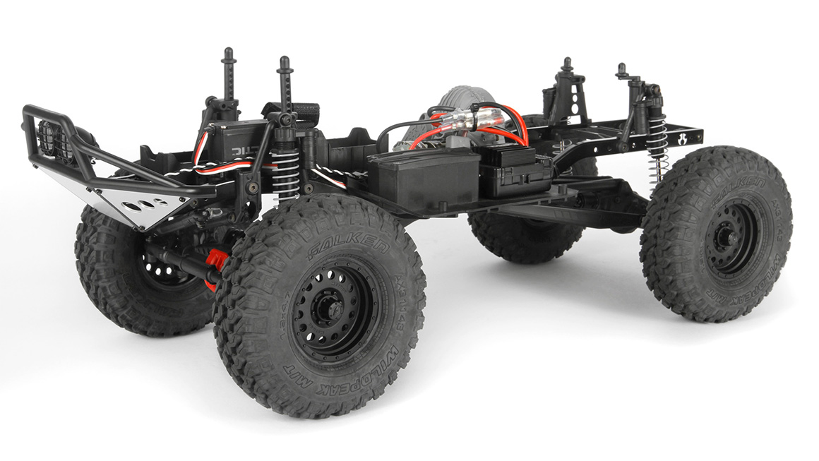 The 1/10 SCX10 II Trail Honcho is the ultimate adventure rig, taking you to unimaginable extremes with every expedition. Based on the proven SCX10 II platform, the Trail Honcho boasts a tough steel C-channel frame rail chassis, adjustable coil-over oil shocks, an adjustable AX10 transmission, a four-LED set, 1.9" Falken WildPeak M/T tires and 1.9 Method Hole wheels. A water-resistant 35T motor, a waterproof AE-5L ESC and Tactic TTX200 SLT radio system add to the quality – and convenience.