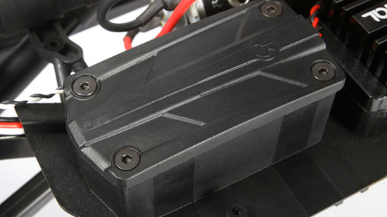 The adjustable battery tray is located low and in the forward position for better weight distribution and center of gravity (COG).