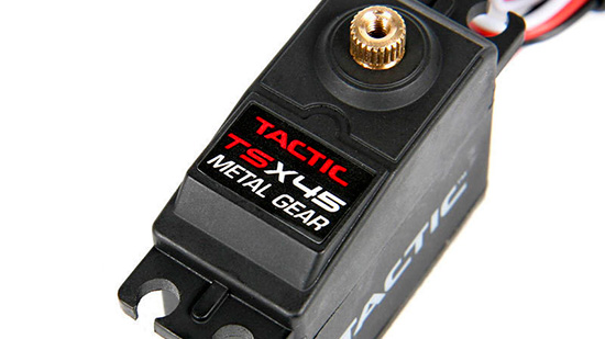 The included Tactic TSX45 metal gear servo is rated at 151 oz-in of torque for massive turning power and dual ball bearings provide smooth and precise movement for the metal gear train.