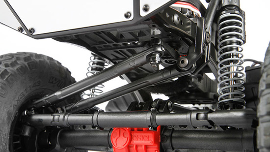 Scale matters, but so does geometry! In pursuit of scale looks, the servo has moved off the top of the axle and onto the chassis, just as a full size truck has its steering box located on the frame. The front suspension design also helps eliminate bump steer as much as possible for the best driving experience.