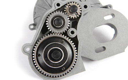 The ultra compact transmission allows for a wide range of gearing choices. The overall ratio can be adjusted using different pinion and spur gear choices allowing super high speed or competition level crawling speed. The new transmission housing design still retains the basic function of the original transmission but in a new more scale looking case.