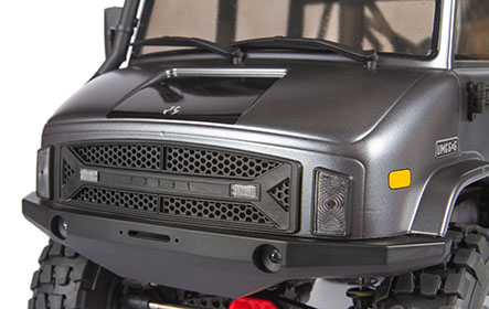 The realistic molded plastic grille features details such as a radiator, an embossed Axial® logo, two clear marker lenses, and two headlight lenses. Additional scale details can be found throughout the body for an authentic military look.