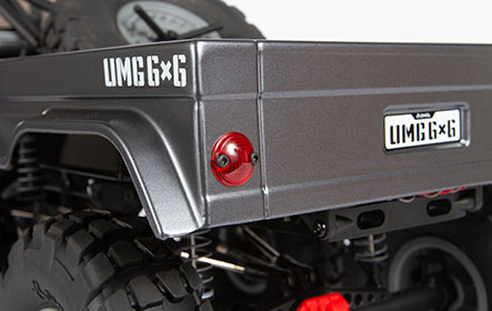 For realism that continues when the sun goes down, outfit your UMG10™ 6X6 with lights — a total of eight mounting locations are built-in for easy LED installation. Four LED lights are included* - two white LED lights are mounted in the front bumper, and two red LED tail lights are mounted in the rear of the bed.