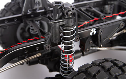 Made to tight tolerances, the included coilover shocks feature precision-machined pistons for smooth action throughout their range of travel, delivering the crawling performance you expect from an Axial® vehicle.