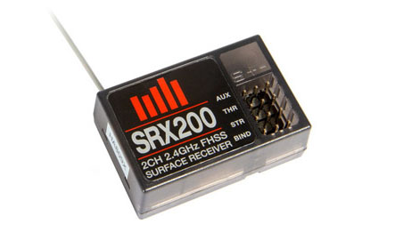The SRX200 is a 2 channel 2.4GHz receiver that operates on the FHSS modulation. It is conformal coated to help prevent damage from water, dust and other elements. Features an extra-long antenna lead for easy and effective antenna placement.