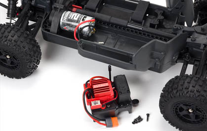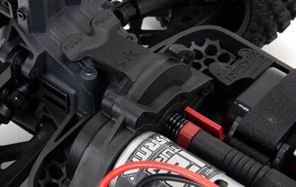 • Two-piece molding screwed to the chassis contains a waterproof receiver box, servo mount, and ESC tray.