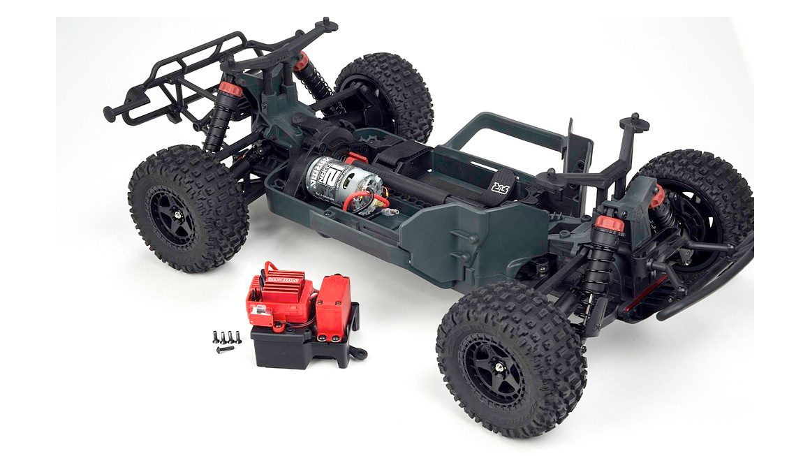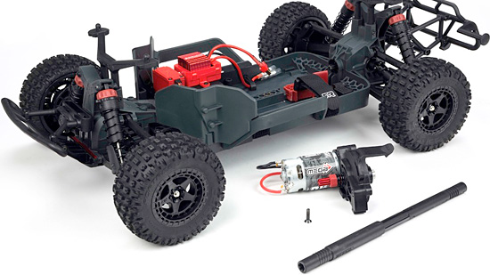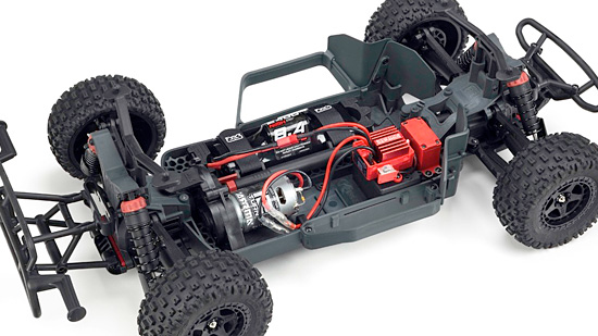 The 4x4 MEGA power system features a high-torque 550 sized 12 turn brushed motor.