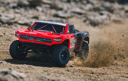 Powered by the MEGA 550 brushed motor system, the ARRMA® SENTON™ 4X4 MEGA RTR Short Course Truck is DESIGNED FAST, DESIGNED TOUGH — built for exciting bashing speeds and extreme, all-terrain durability! Its full-time 4WD transmission with front and rear differentials uses strong front, rear, and centerline telescoping driveshafts that can't be lost during heavy impacts, unlike dogbones. A simple, dependable, responsive steering assembly complements the ultra-reliable drive system and features a servo horn with built-in servo saver.