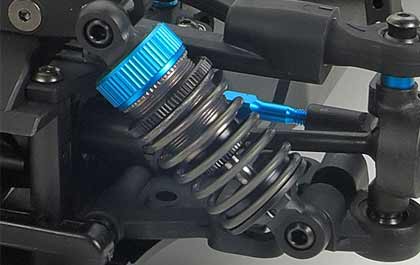 A-arm suspension arm gives your model a low center of gravity, enhanced with laid down dampers.