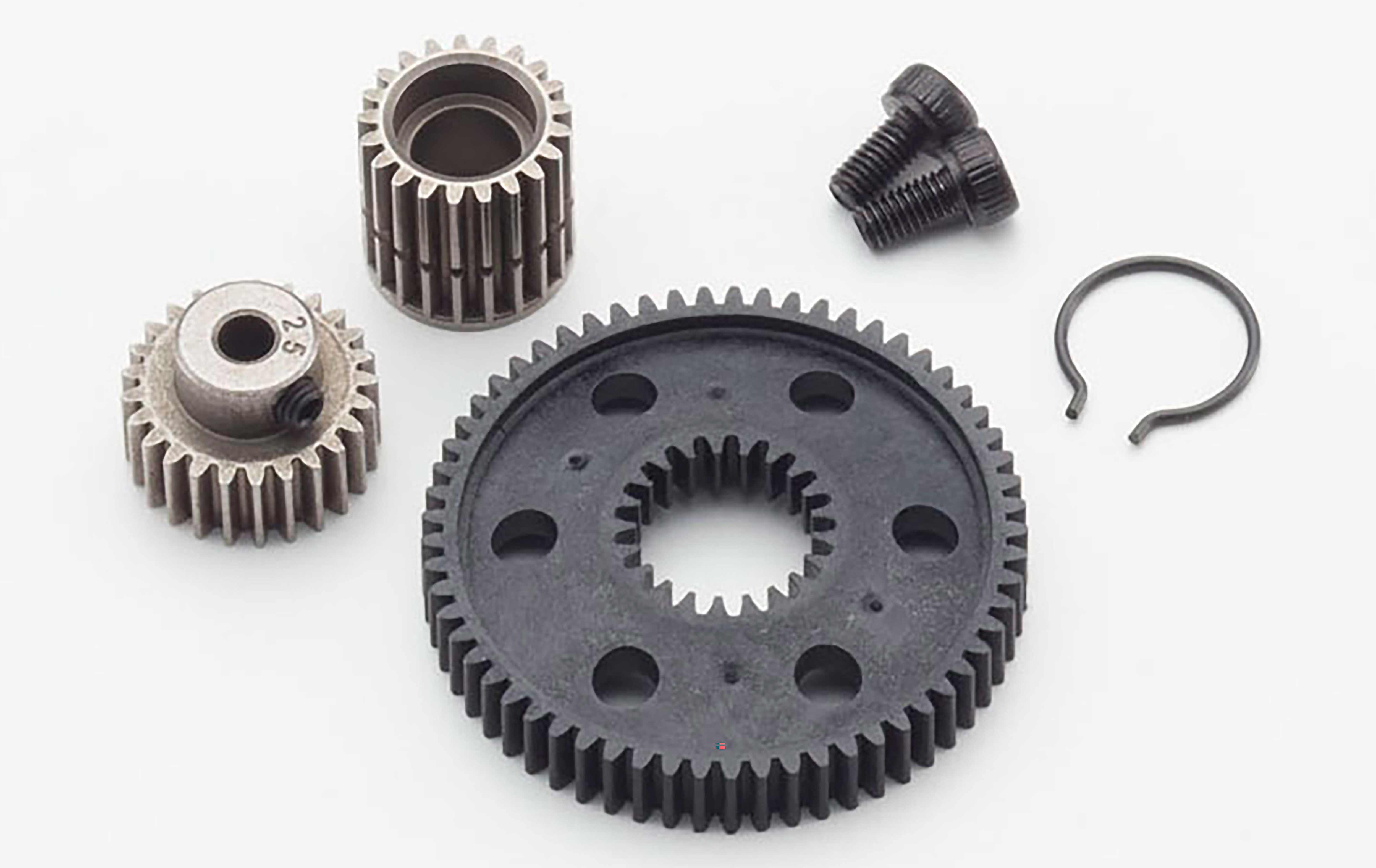 Sintered alloy 48 pitch gears combined with high impact nylon gears and newly added slipper clutch will cope with the current power plants.