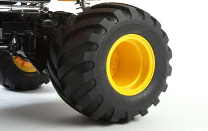 Big 115mm diameter semi-pneumatic tires on big, Monster Truck wheels offer dynamic running on even the toughest of surfaces.