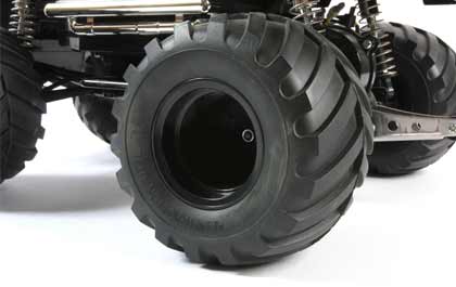 Big 115mm diameter semi-pneumatic tires on big, Monster Truck wheels offer dynamic running on even the toughest of surfaces.