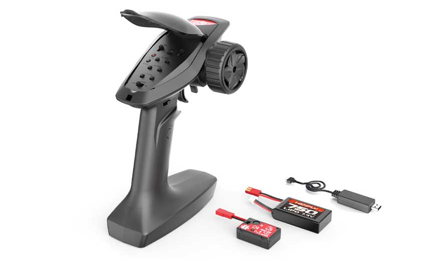 Ascent-18 comes with 750mAh LiPo battery, USB charger, multi-channel radio with 2-in-1 receiver.
