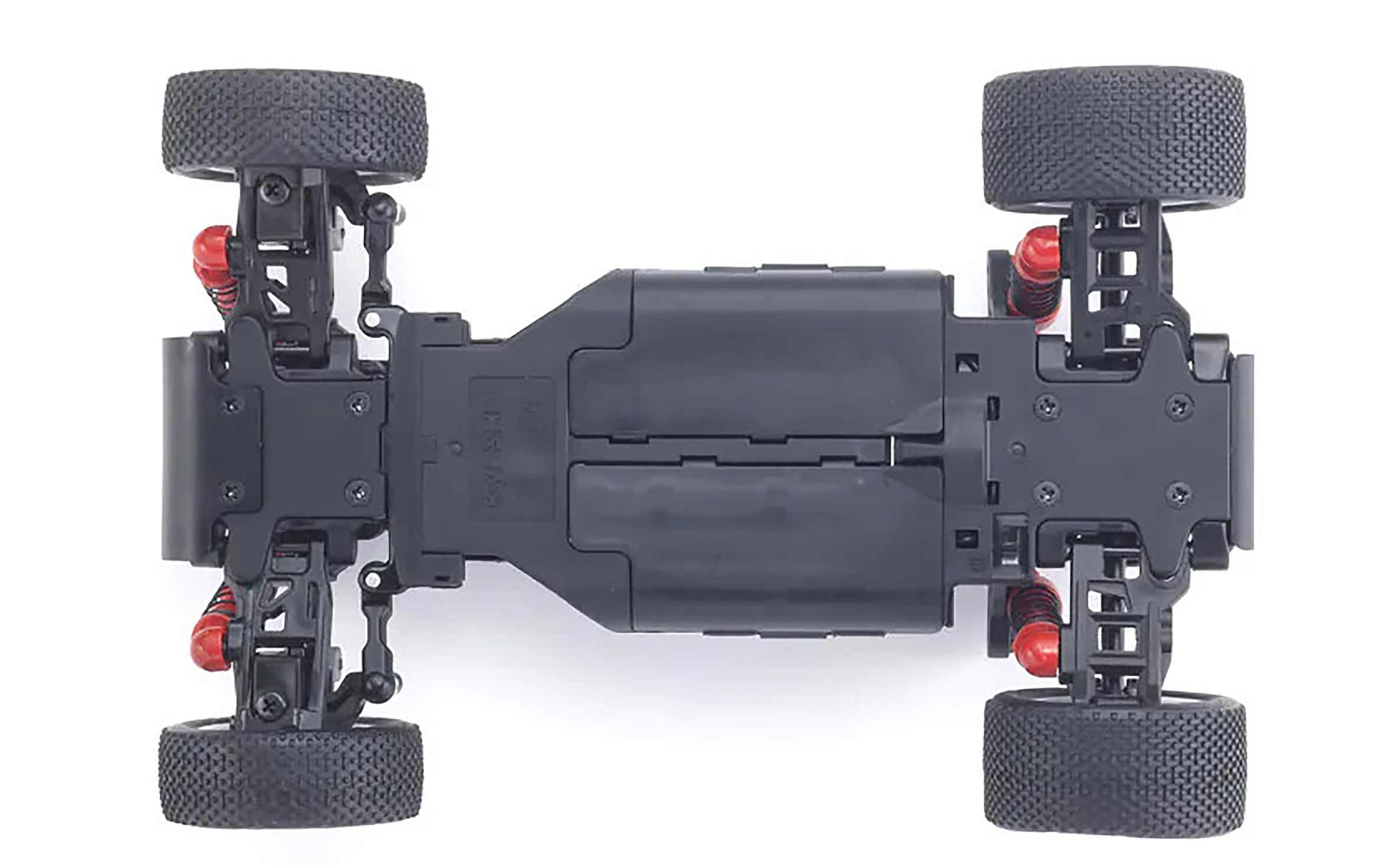 Shaft driven 4WD and 4-wheel independent suspension are condensed in the MINI-Z’s compact size. The chassis powers easily over small bumps and gaps.