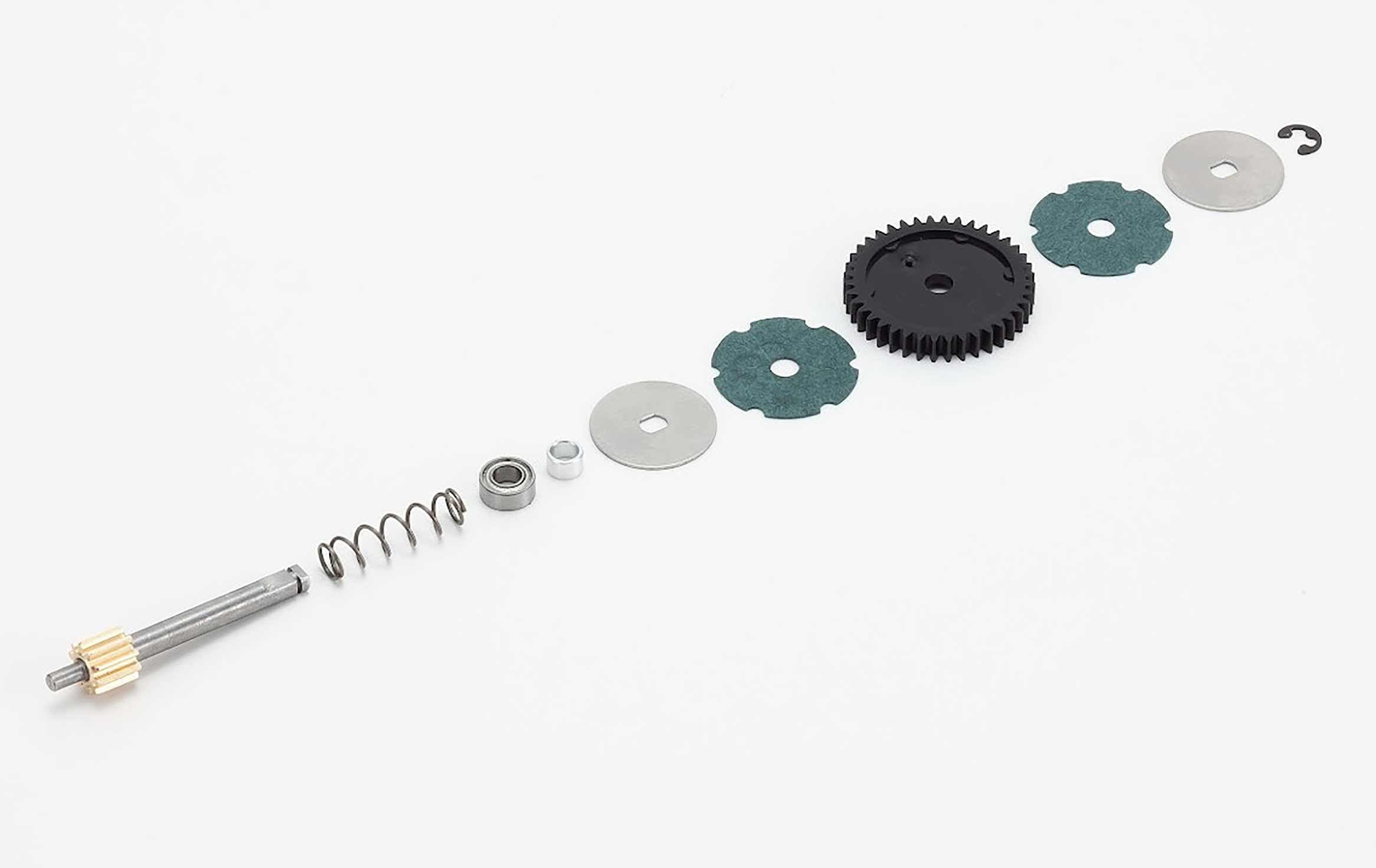 A standard slipper clutch protects the drive system and features a metal shaft and primary gear for durability.