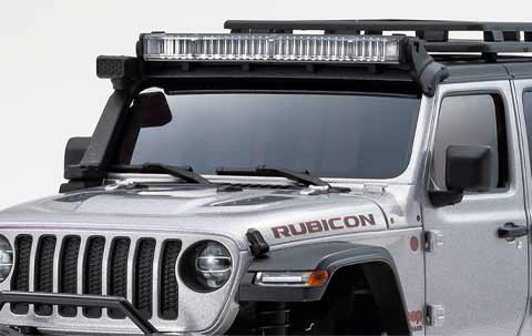 Black Over fenders, grille, light bar and snorkel enhance the scale appearance.