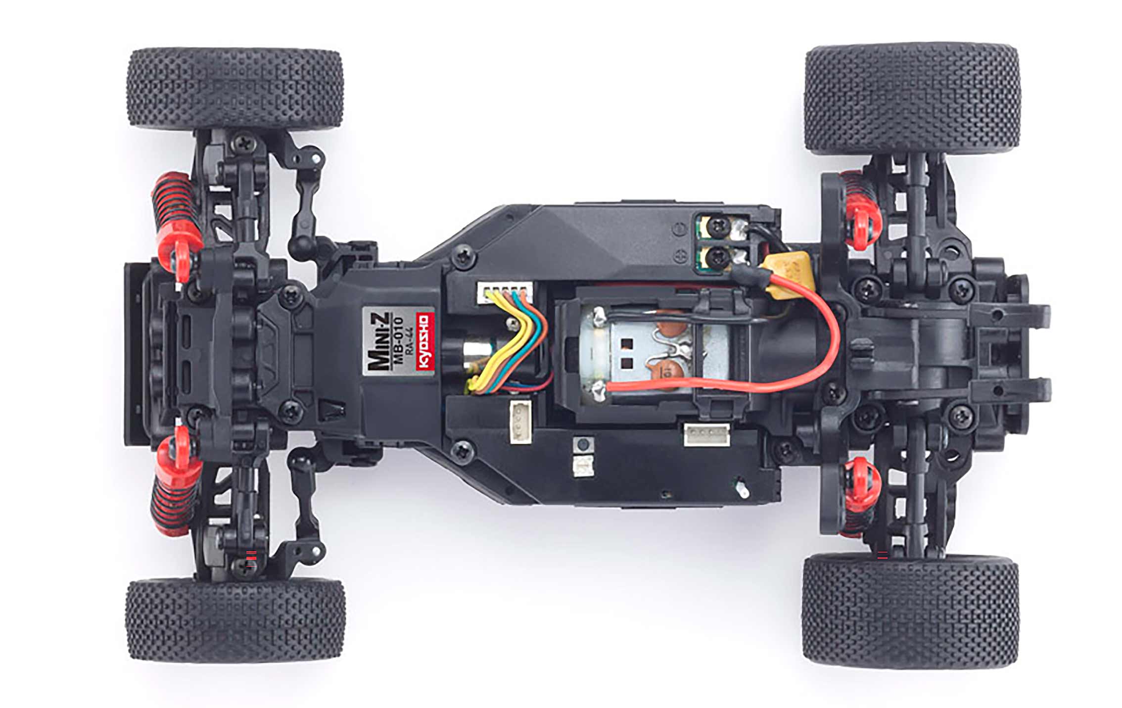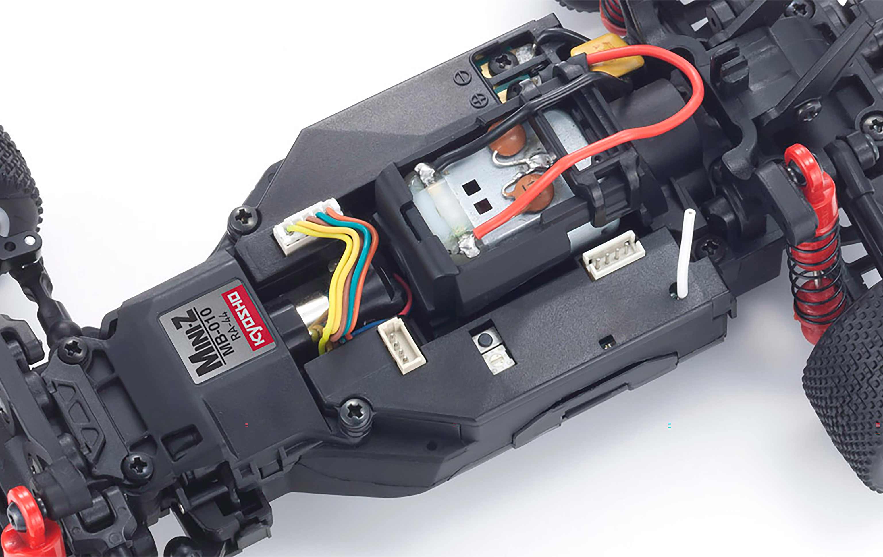 Shaft driven 4WD and 4-wheel independent suspension are condensed in the MINI-Z’s compact size. The chassis powers easily over small bumps and gaps.