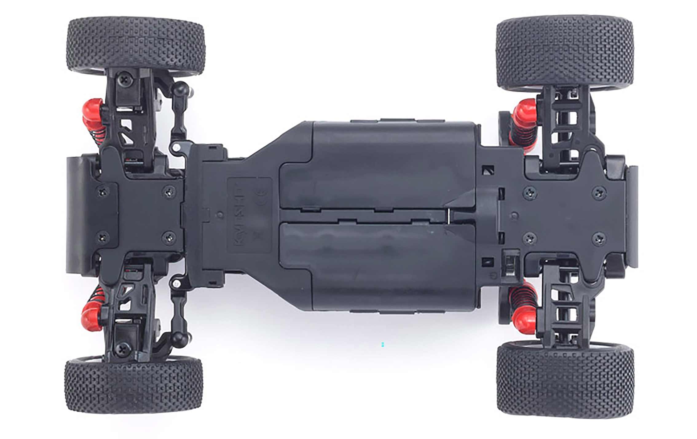 Chassis features shell structure with battery boxes on each side for low CG and balanced handling. High rigidity extracts full effectiveness from the suspension.