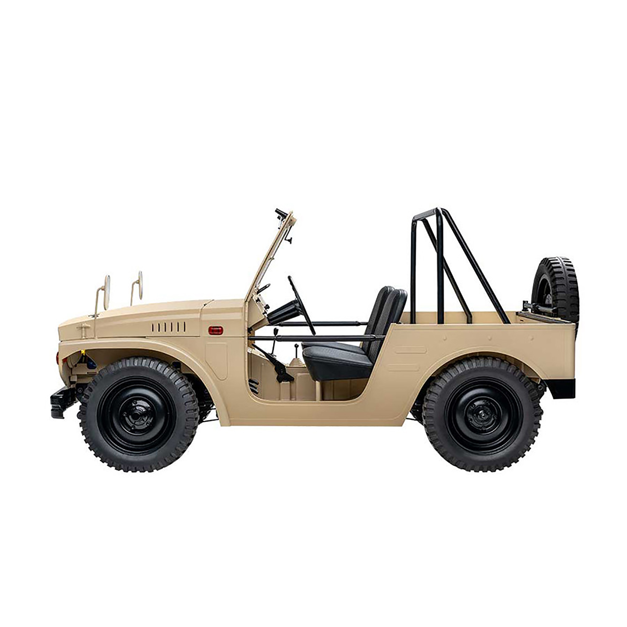 FMS is proud to present this 1/6 scale officially licensed Jimny LJ10. It boldly adopts a metal beam, non-load bearing chassis, front and rear leaf spring suspension and universal joints. The soft-rubber-wrapped seats feature a cushion like softness and can be collapsed, making them a perfect match for 1/6 figures.