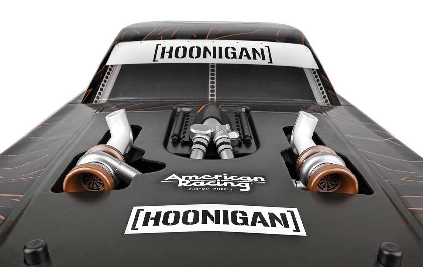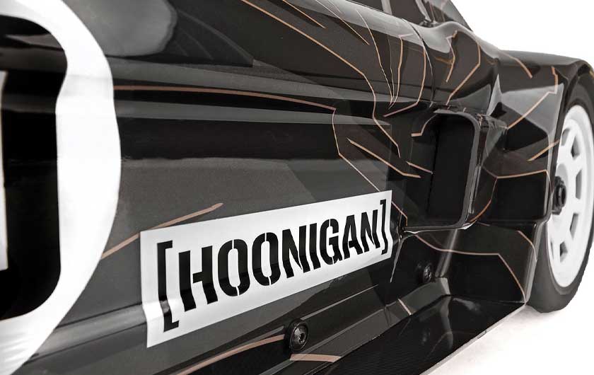 Designed from the ground up by our in-house Area 51 Design Works engineers, the Team Associated SR7 chassis is our largest and most powerful RC car ever! This makes it the perfect platform for the Hoonicorn and tire-slaying action!