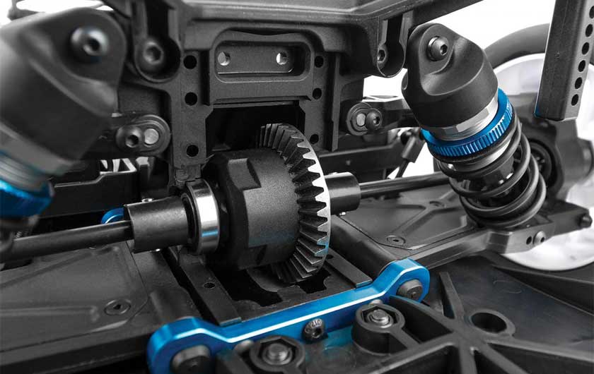 Oil-filled front, center, and rear differentials with steel ring and pinion gears.