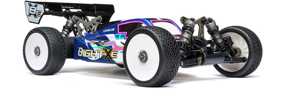 The 8IGHT-XE features a more traditional "wide" style chassis that increases stability, balance and gives the buggy a more neutral feel. This also allows for the component's to be spread out instead of cramped together as with a narrow style chassis making maintenance a breeze.