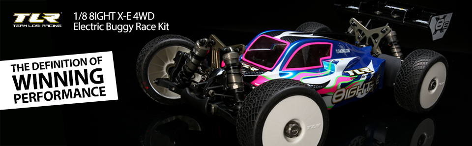 When the original 8IGHT-E™ hit the market, it turned the electric 1/8 Buggy market on its lid with a unique chassis layout and innovative design. The Team Losi Racing® 8IGHT-XE™ 1/8 Electric Buggy takes it to the next level with a new, from the ground-up design that once again sets the bar for all 1/8th scale Electric Buggies. It features a more traditional style chassis layout that has a neutral driving feel, improved jumping capabilities and better bump absorption. It is essentially a brand new platform built from the ground up. The 8IGHT-XE features major updates to the suspension package, overall geometry and a new drivetrain layout. Add in the new easy access differentials, adjustable caster blocks, new steering rack, new sway bar system and you have an E-Buggy designed to be easier to drive, faster and accepted worldwide.