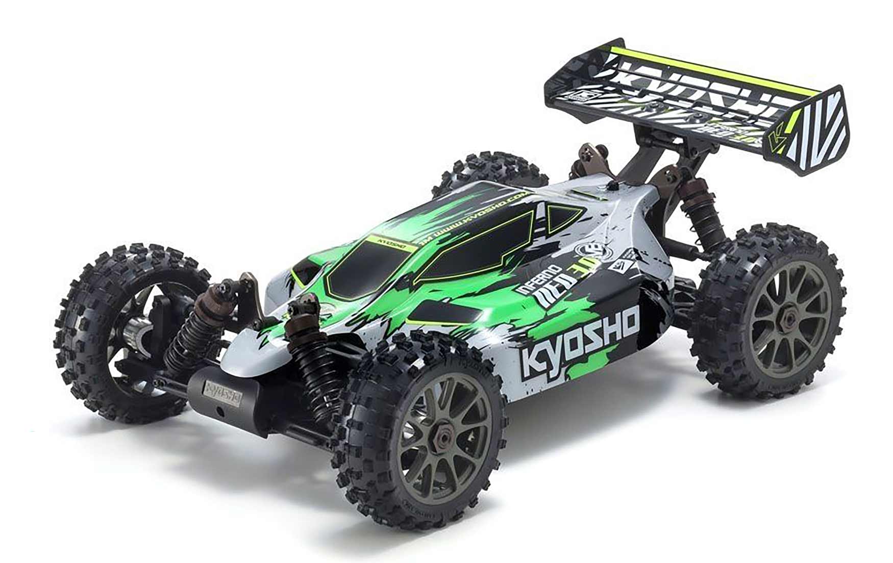Factory assembled Inferno NEO 3.0 VE Readyset delivers blistering acceleration of 0-50m in 3.5 seconds; now updated with minor changes. With its formidable reputation built on the racing scenes around the world, the VE uses the flagship model as a base to add a new brushless motor and ESC. The Syncro KT-231P+ transmitter delivers vastly improved control and features precision setting adjustments with throttle end point adjust, dual rate adjuster, plus a high-torque and high-speed steering servo. In addition, the powerful KYOSHO SPEED HOUSE brushless motor and ESC combines with big bore oil shocks and KC Cross tires to deliver superior performance on any surface. The Inferno NEO 3.0 VE allows anyone to test the bounds of common sense with powerful brushless motor acceleration.