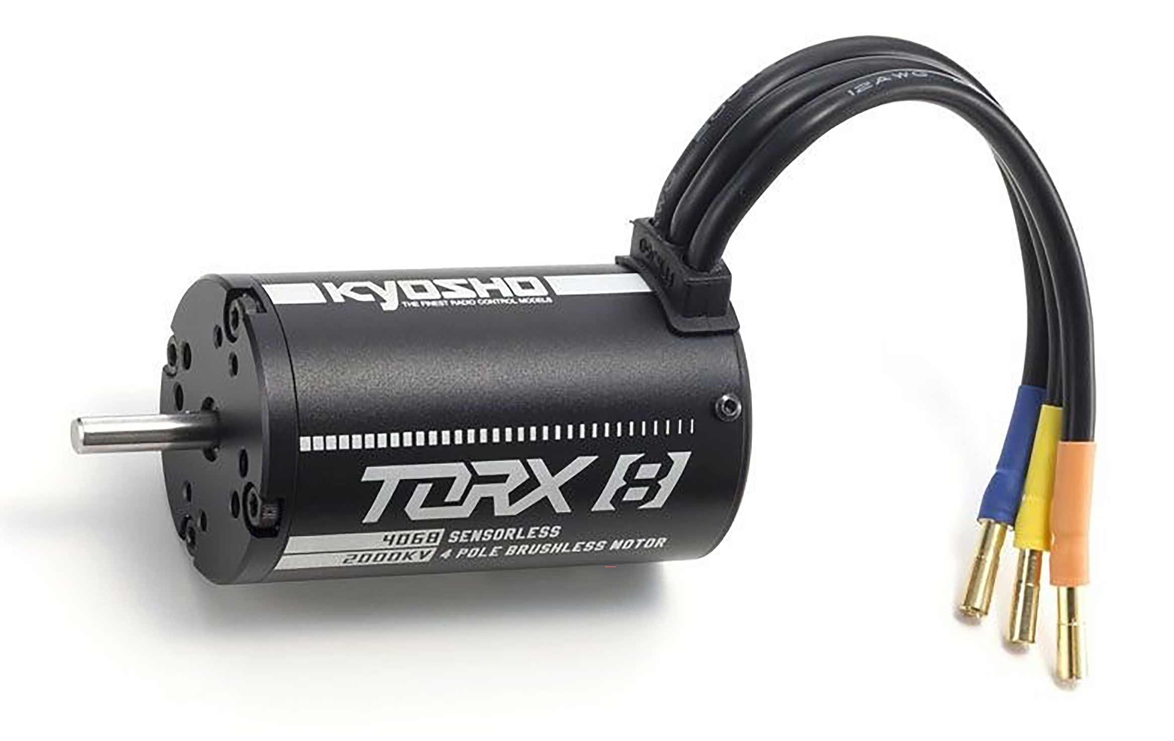 KYOSHO SPEED HOUSE TORX8 brushless motor delivers powerful acceleration. 2-piece motor mount allows easy backlash adjustment and removal of motor.